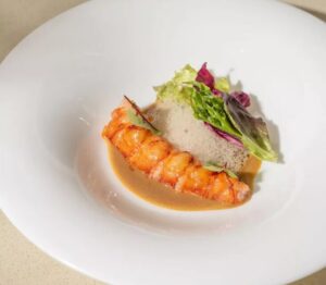Restaurant Shu KL is named after Chef Wong’s mother and reflects his Chinese heritage and childhood food memories. The restaurant offers a single tasting menu inspired by Chinese diaspora cuisine, reinterpreting familiar flavours with seasonal produce and modern European techniques. A standout dish is his take on drunken prawn—raw akaebi marinated in Shaoxing wine, drizzled with umami-rich Huadiao beurre blanc, and topped with ikura and tender cubes of squid for added layers of texture.