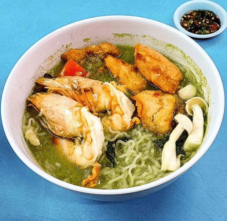 「Ghee Lian」は、シンプルながら完成度の高い麺料理で人気のローカル店。看板のグリーントムヤムは、酸味と辛さのバランスが絶妙で、一口ごとにクセになる味わいです。外はカリッと中はジューシーな揚げ魚のトッピングや、旨みたっぷりの大ぶりのエビも魅力。スープ麺や焼き麺も揃い、どれを選んでも満足度の高い一杯が楽しめます。